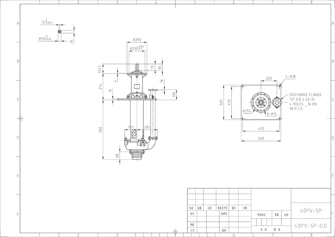 40PV-SP vertical slurry pump is a kind of high efficiency, wear resistant, corrosion resistant centrifugal slurry pump, widely used in mining, electric power, metallurgy, coal, chemical industry, building materials and other industries.The pump adopts vertical multi-stage structure, compact design, small footprint, easy to install and maintain.